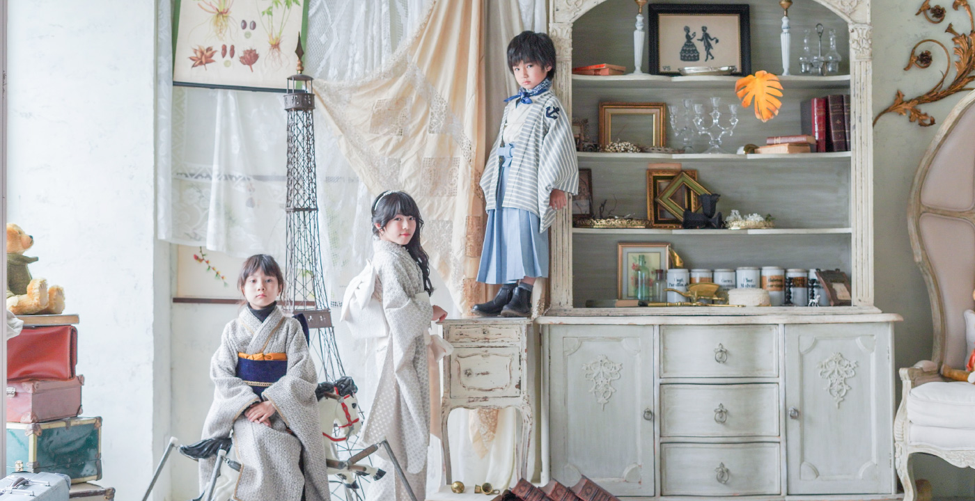 着物レンタル / 小物一式レンタル / スタッフによるお任せヘアセット・着付 無料 / 家族・きょうだい撮影 / 写真の色・明るさの調整